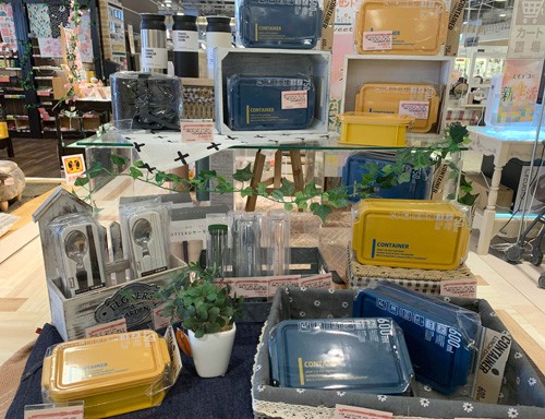 他には、コンテナ型のお洒落可愛いお弁当箱にくすみカラーのカトラリーセットや・・・![]()